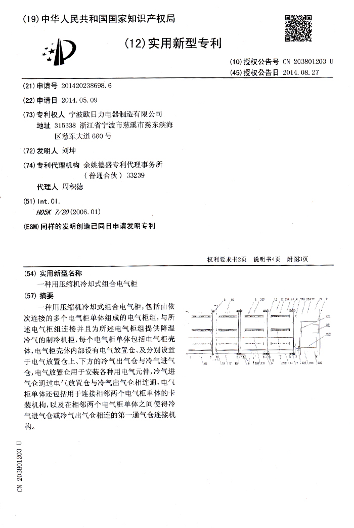 一種用壓縮機(jī)冷卻式組合電氣柜